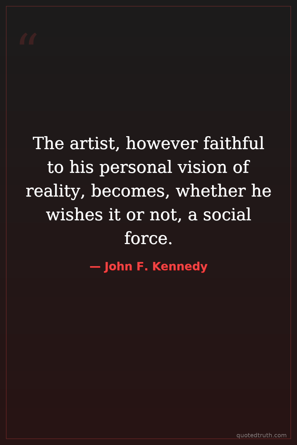 The artist, however faithful to his personal vision of reality, becomes, whether he wishes it or not, a social force.