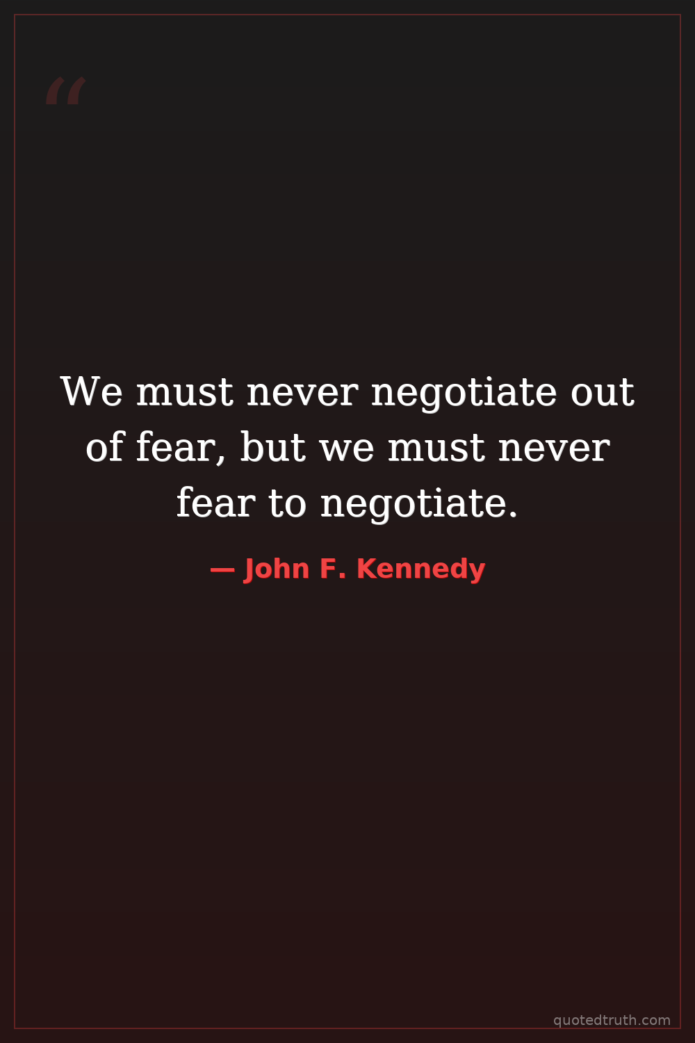 We must never negotiate out of fear, but we must never fear to negotiate.