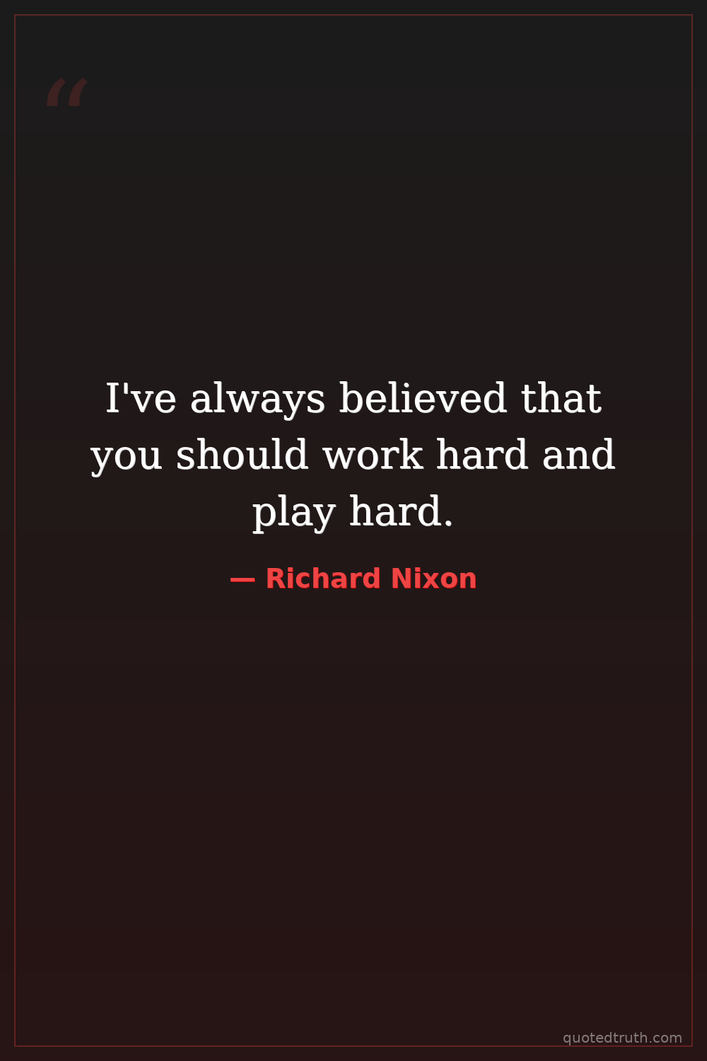 I've always believed that you should work hard and play hard.