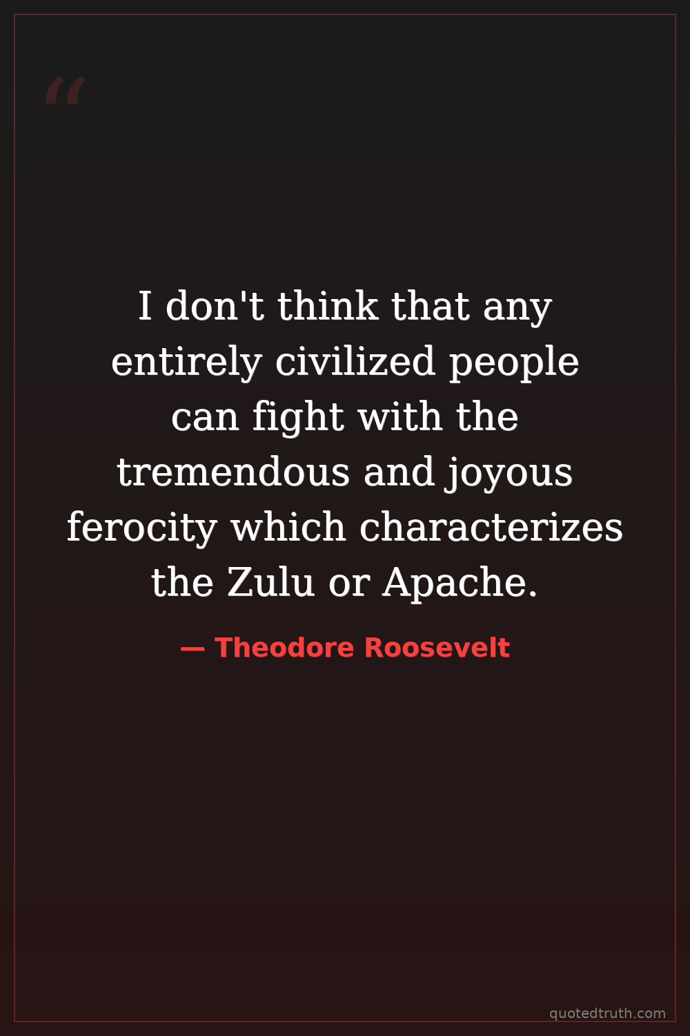 I don't think that any entirely civilized people can fight with the tremendous and joyous ferocity which characterizes the Zulu or Apache.