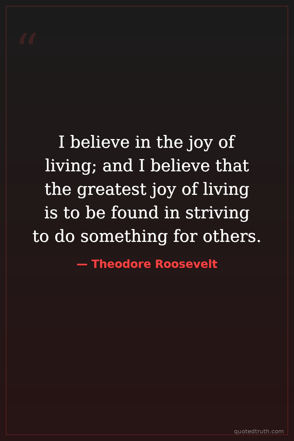 I believe in the joy of living; and I believe that the greatest joy of living is to be found in striving to do something for others.