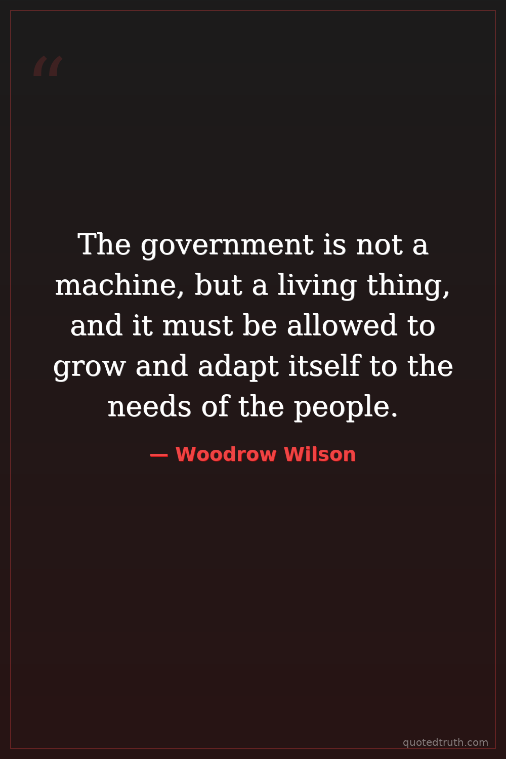 The government is not a machine, but a living thing, and it must be allowed to grow and adapt itself to the needs of the people.
