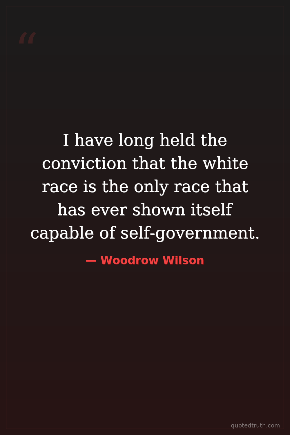 I have long held the conviction that the white race is the only race that has ever shown itself capable of self-government.