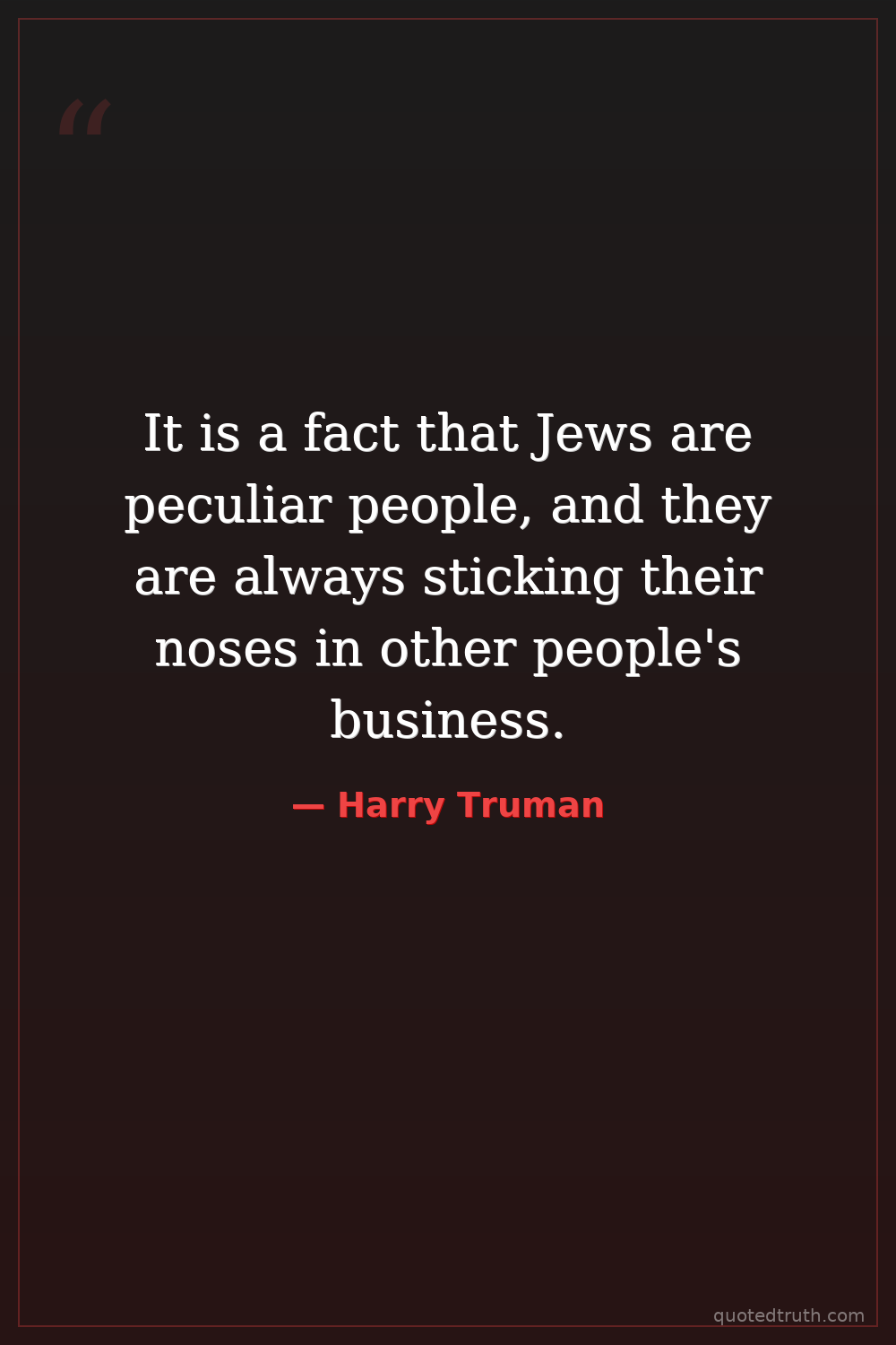 It is a fact that Jews are peculiar people, and they are always sticking their noses in other people's business.