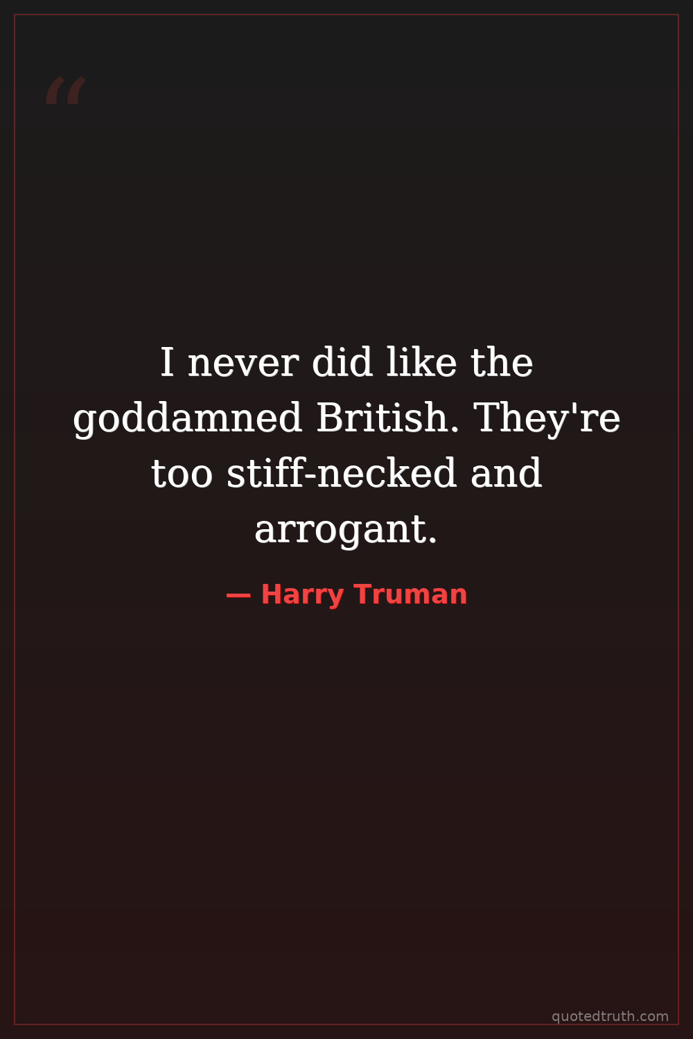 I never did like the goddamned British. They're too stiff-necked and arrogant.