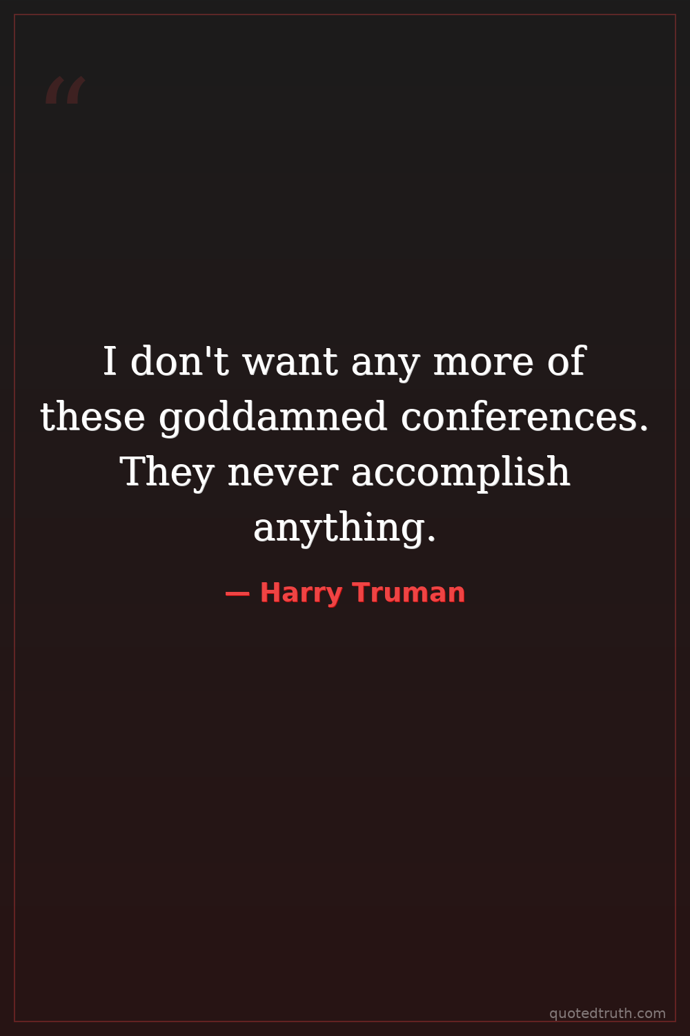 I don't want any more of these goddamned conferences. They never accomplish anything.
