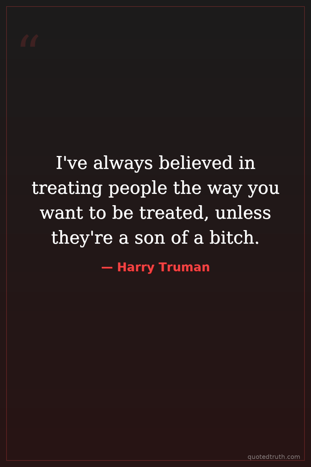 I've always believed in treating people the way you want to be treated, unless they're a son of a bitch.