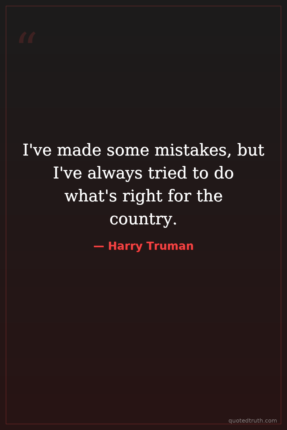 I've made some mistakes, but I've always tried to do what's right for the country.