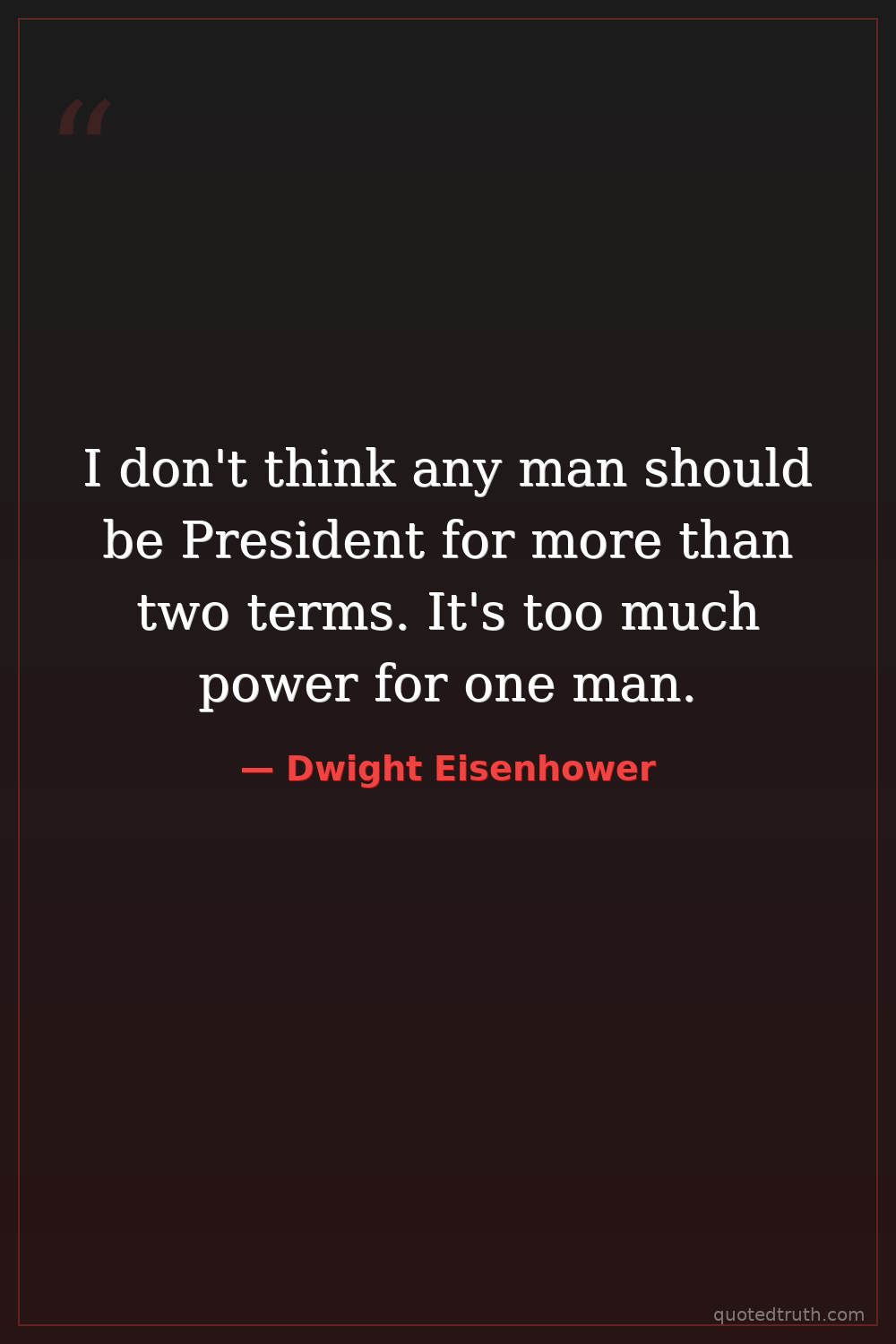 I don't think any man should be President for more than two terms. It's too much power for one man.