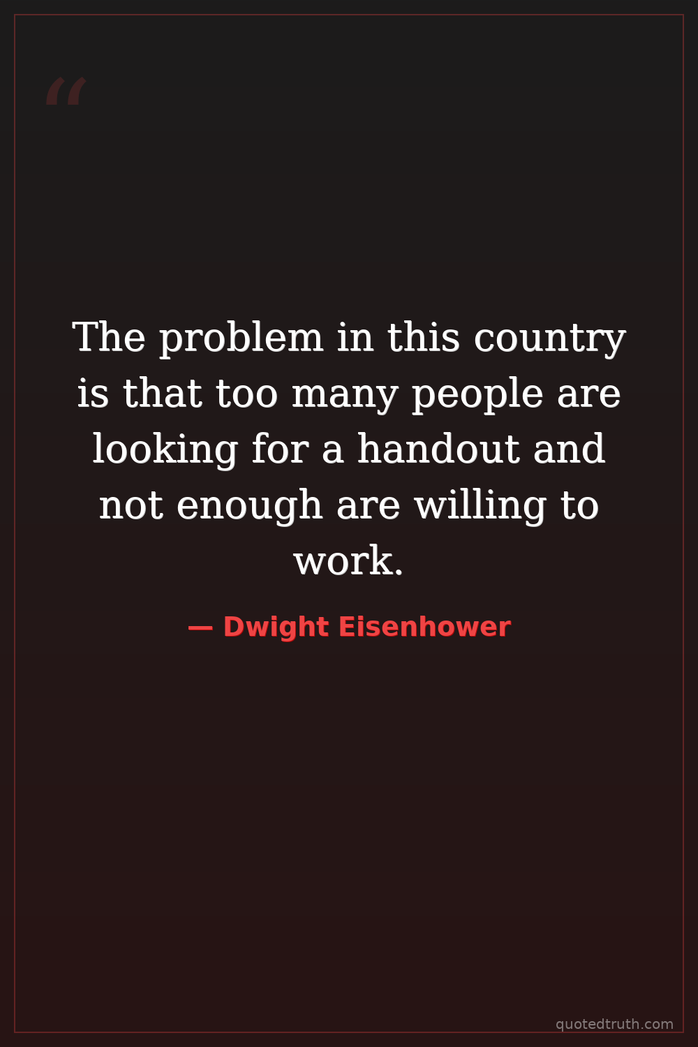 The problem in this country is that too many people are looking for a handout and not enough are willing to work.