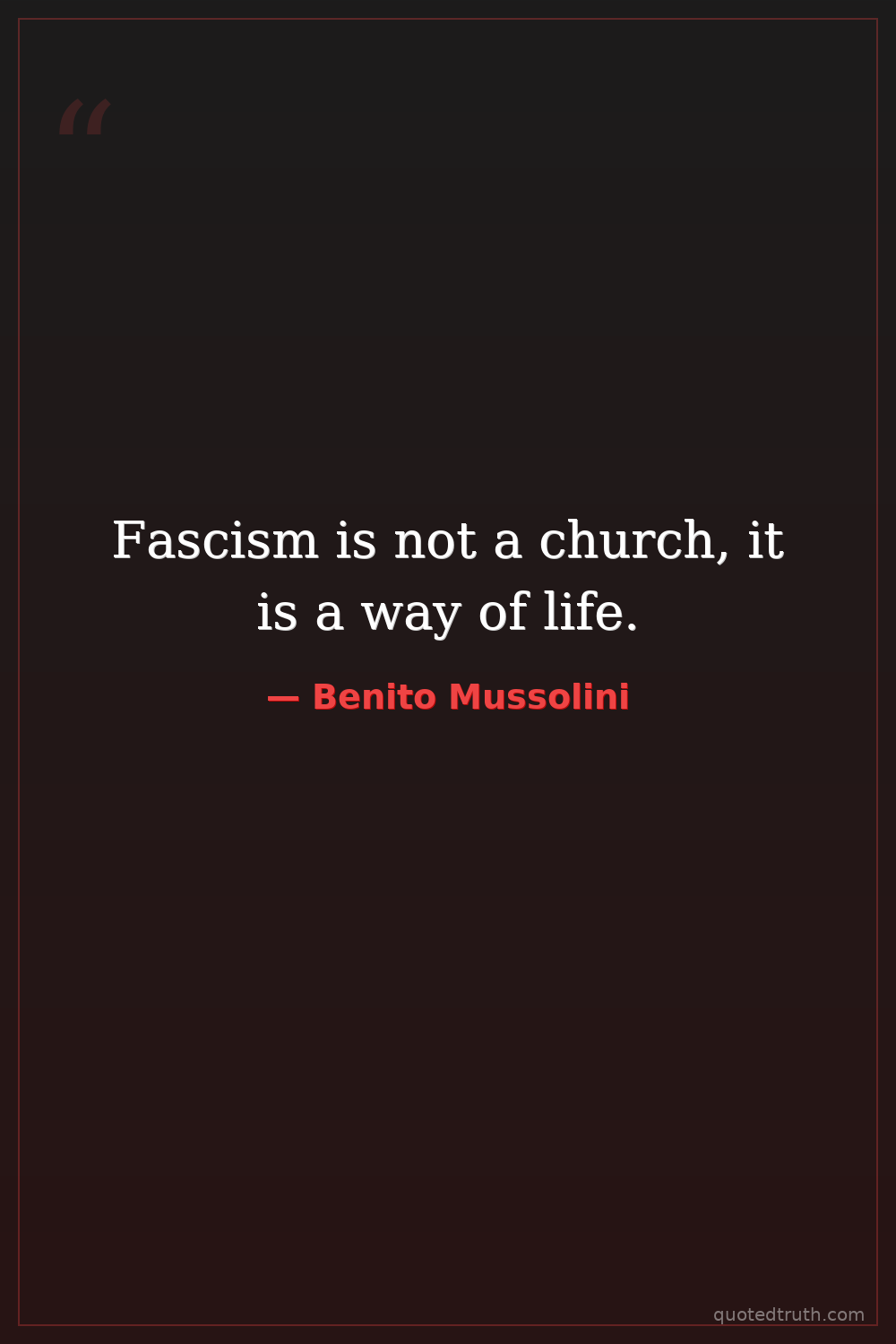 Fascism is not a church, it is a way of life.