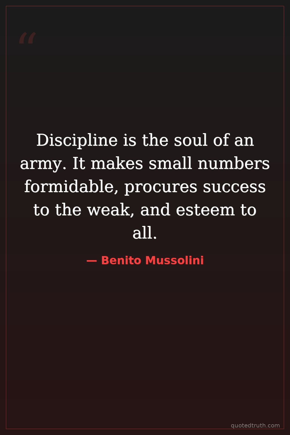 Discipline is the soul of an army. It makes small numbers formidable, procures success to the weak, and esteem to all.