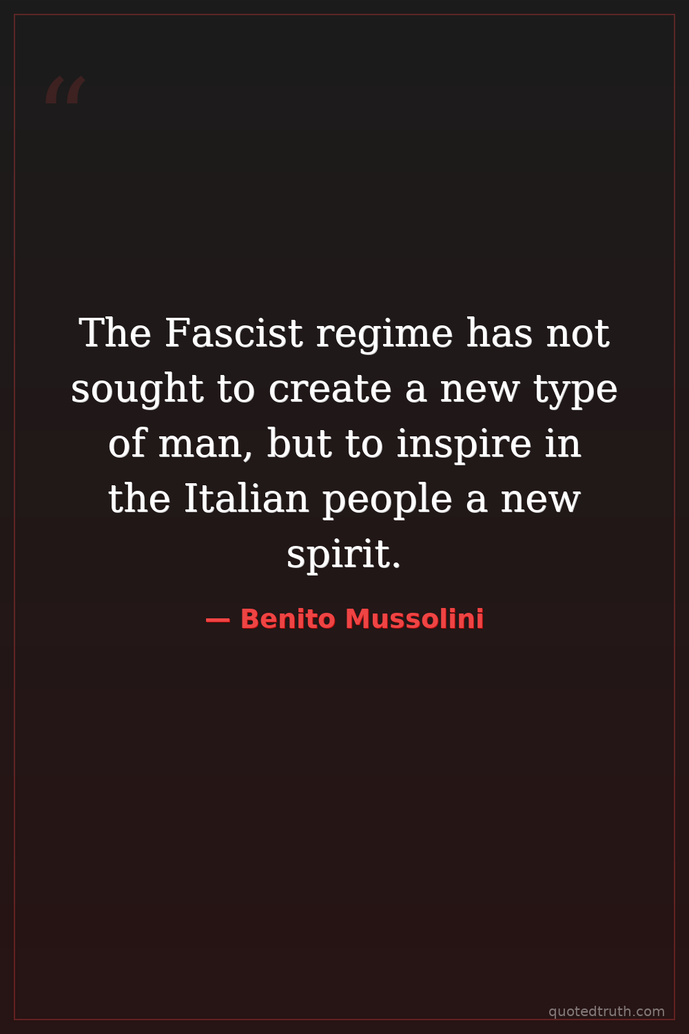 The Fascist regime has not sought to create a new type of man, but to inspire in the Italian people a new spirit.