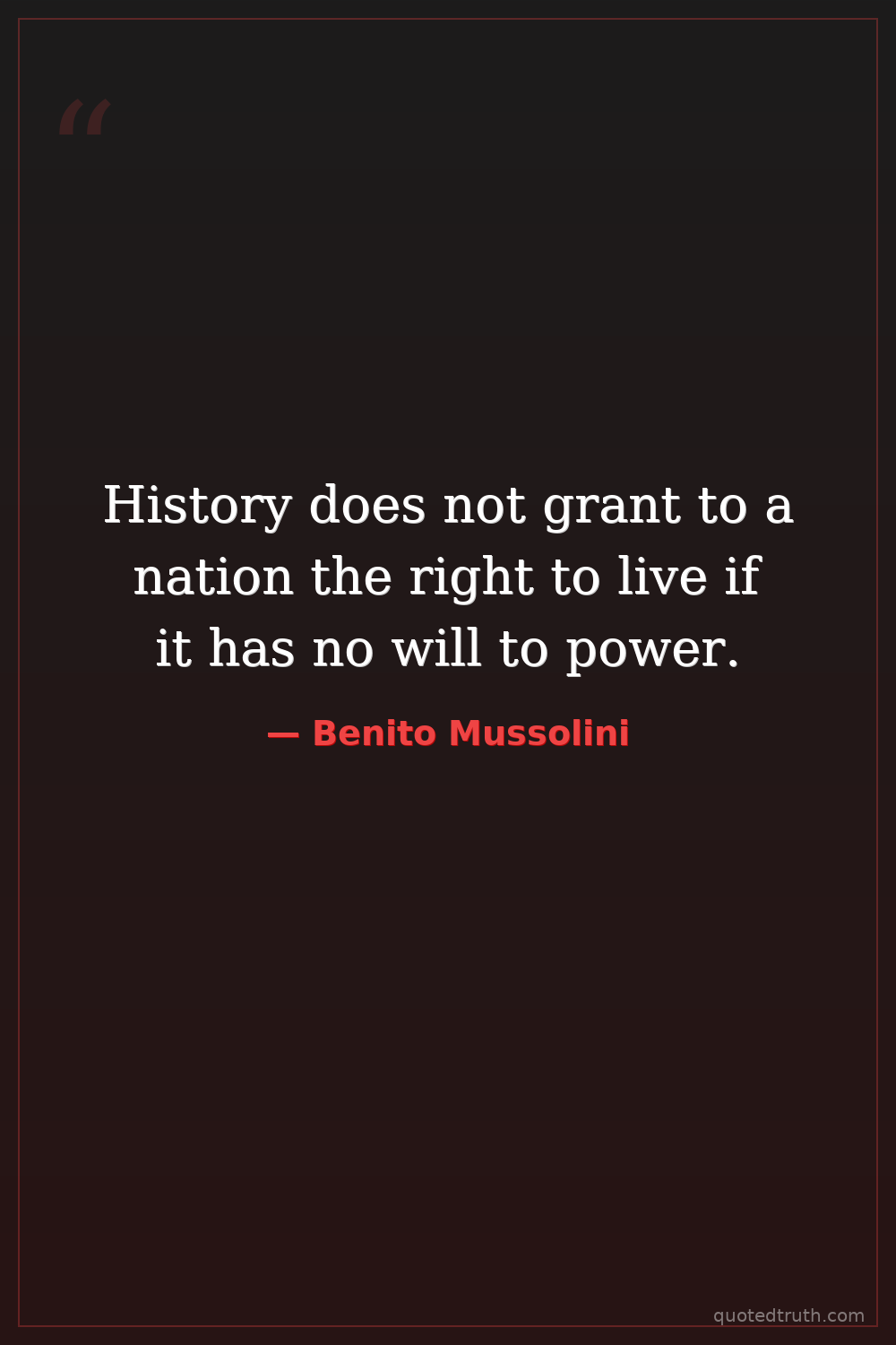 History does not grant to a nation the right to live if it has no will to power.