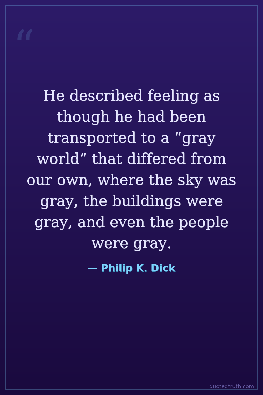 He described feeling as though he had been transported to a “gray world” that differed from our own, where the sky was gray, the buildings were gray, and even the people were gray.