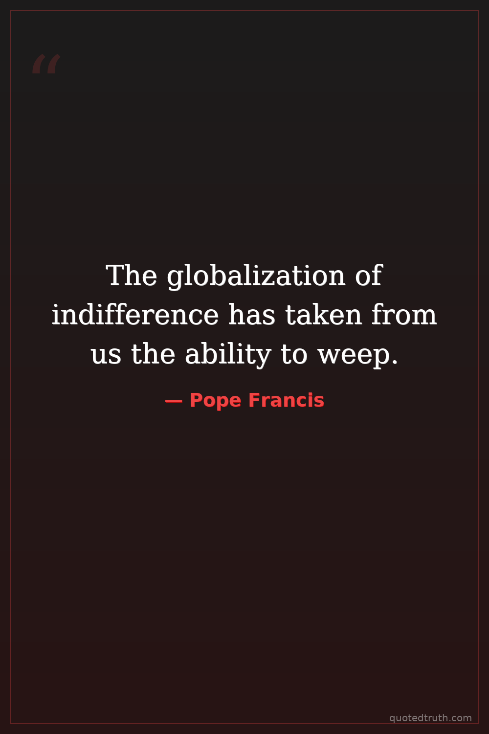 The globalization of indifference has taken from us the ability to weep.