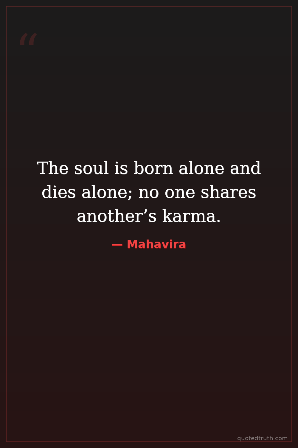 The soul is born alone and dies alone; no one shares another’s karma.