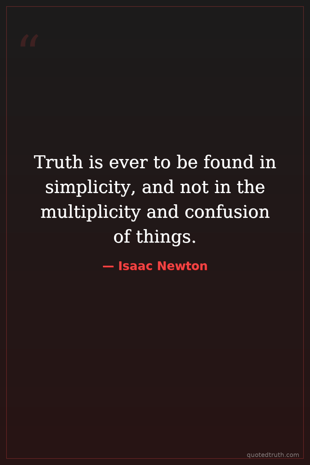 Truth is ever to be found in simplicity, and not in the multiplicity and confusion of things.