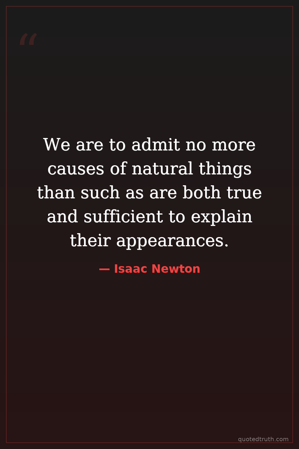 We are to admit no more causes of natural things than such as are both true and sufficient to explain their appearances.