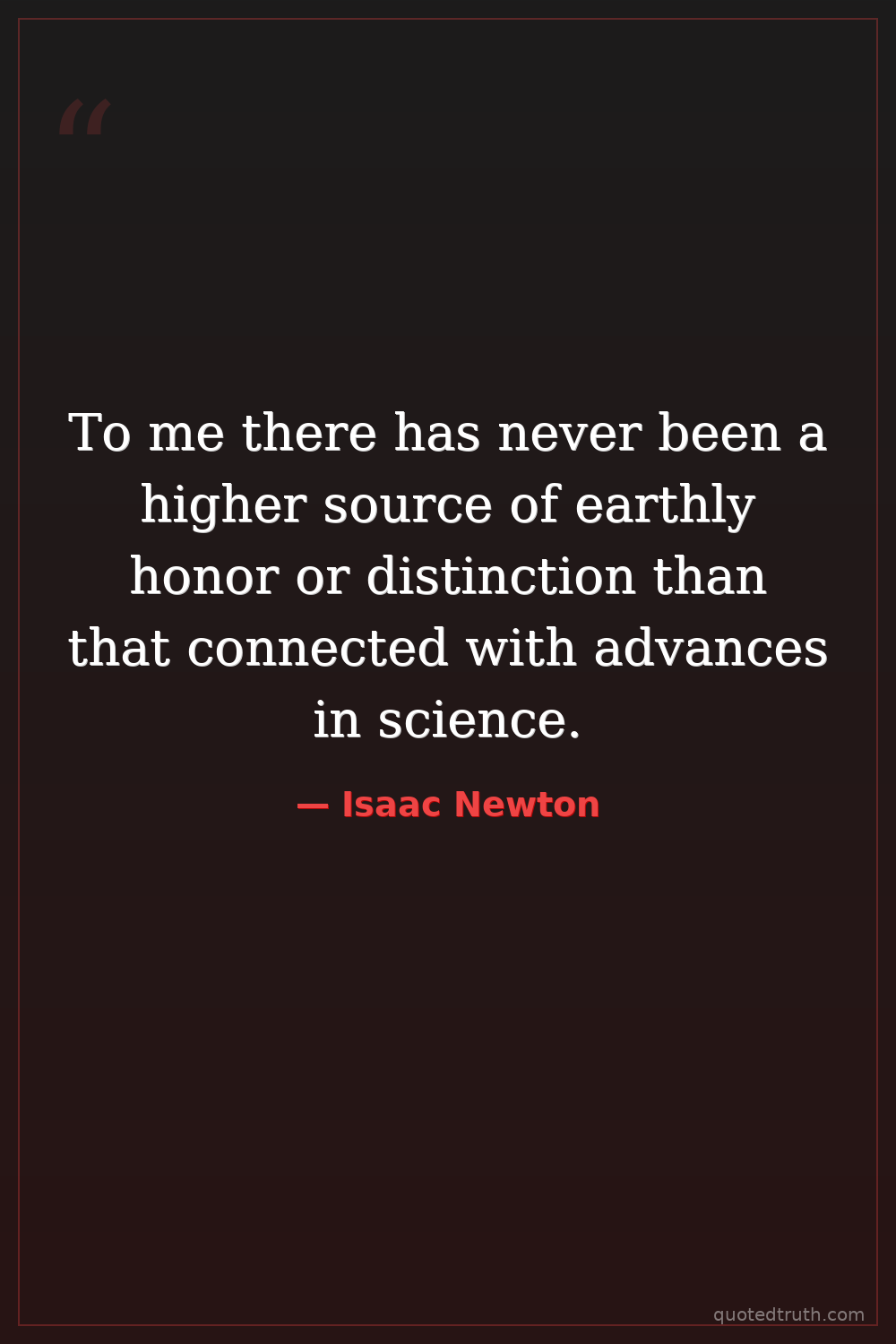 To me there has never been a higher source of earthly honor or distinction than that connected with advances in science.