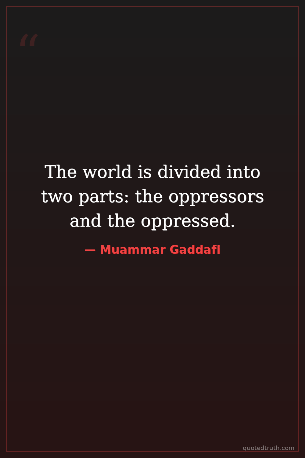 The world is divided into two parts: the oppressors and the oppressed.