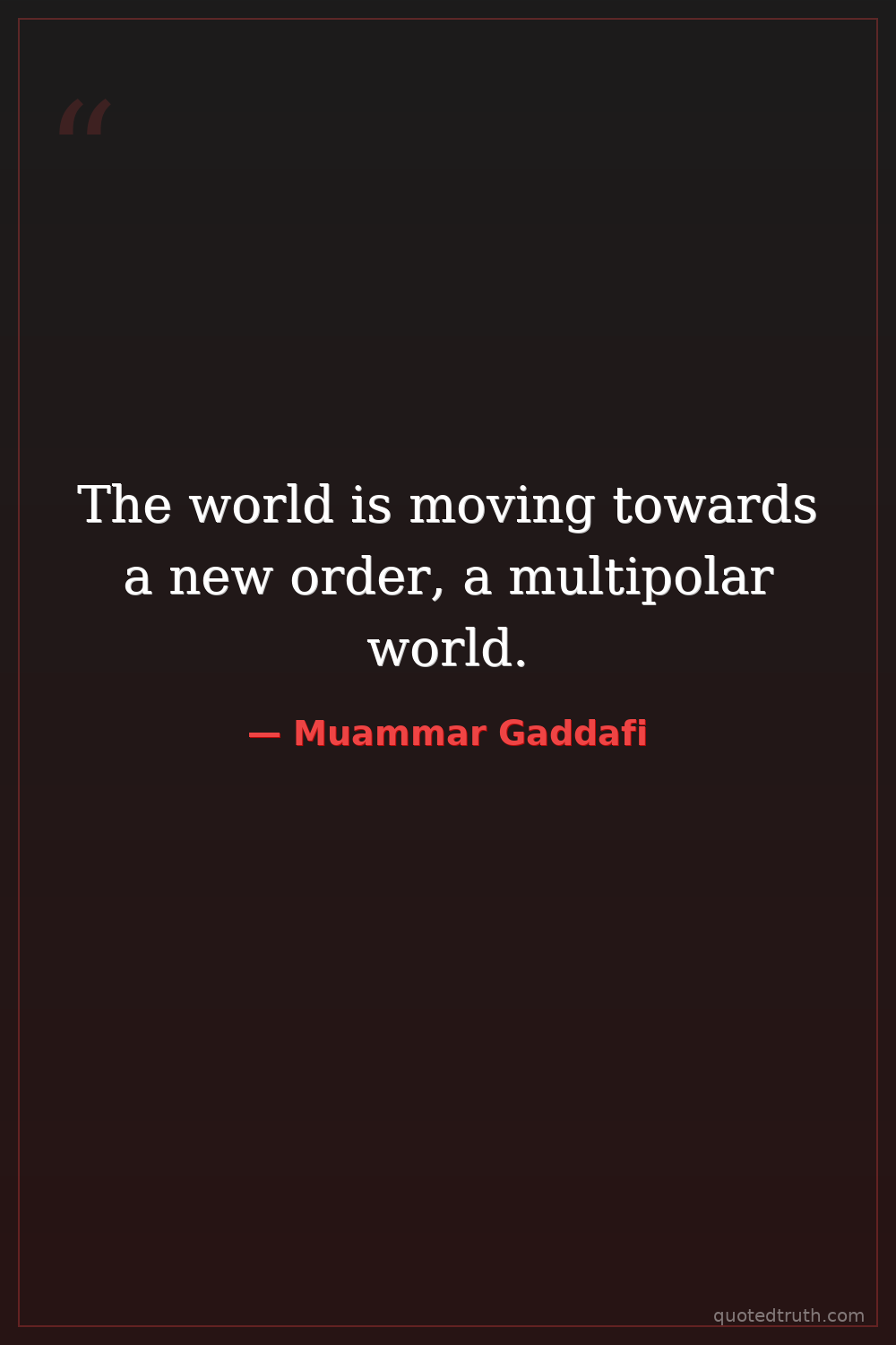 "The world is moving towards a new civilization. It is moving towards a new culture. It is moving towards a new world."