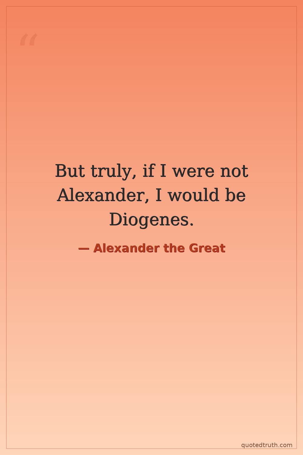 But truly, if I were not Alexander, I would be Diogenes.