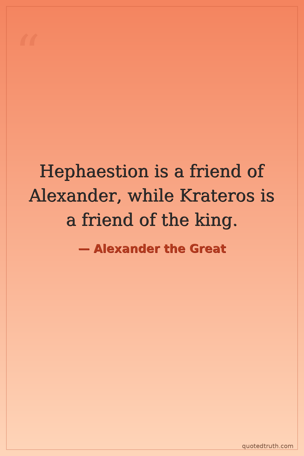 Hephaestion is a friend of Alexander, while Krateros is a friend of the king.
