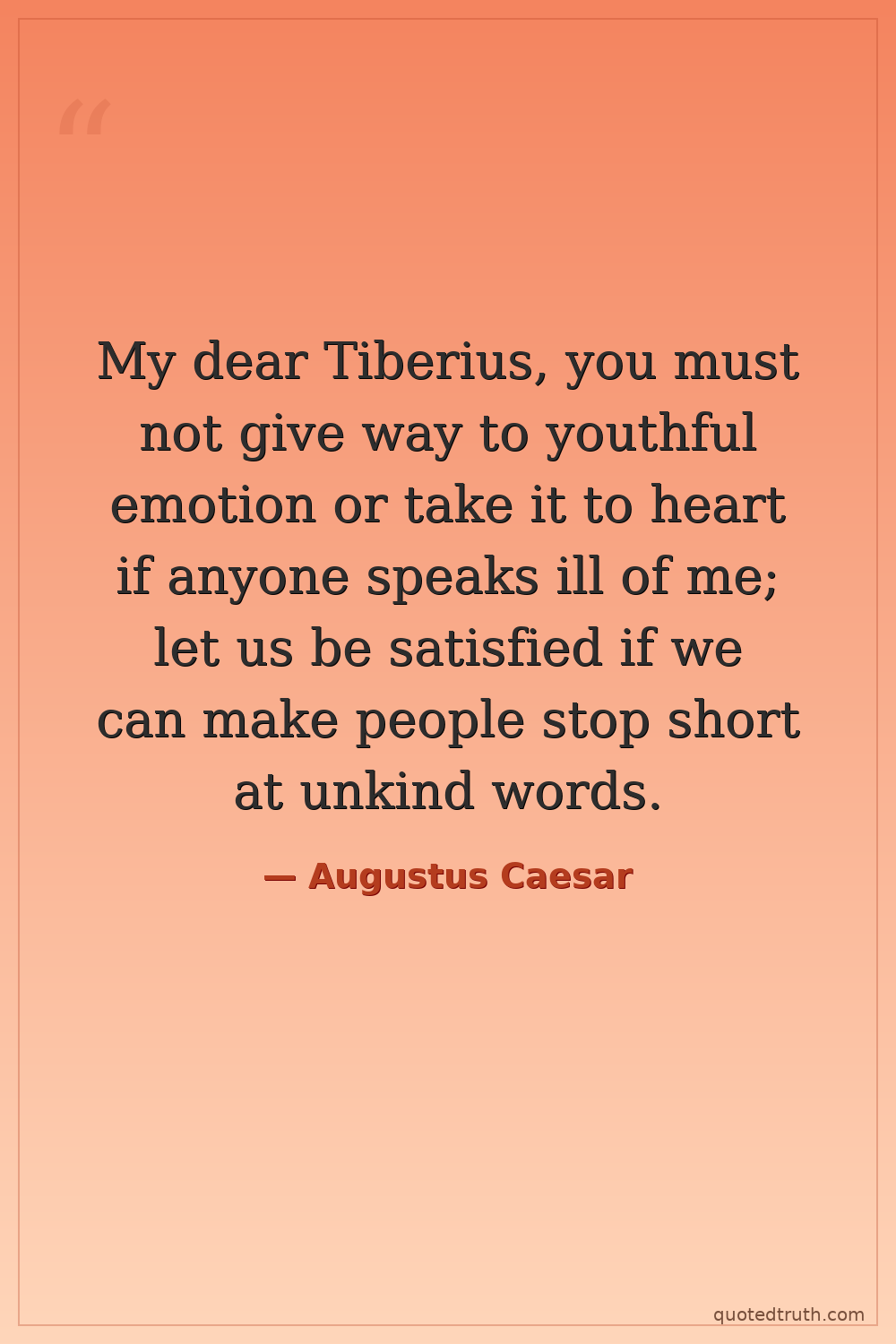 My dear Tiberius, you must not give way to youthful emotion or take it to heart if anyone speaks ill of me; let us be satisfied if we can make people stop short at unkind words.