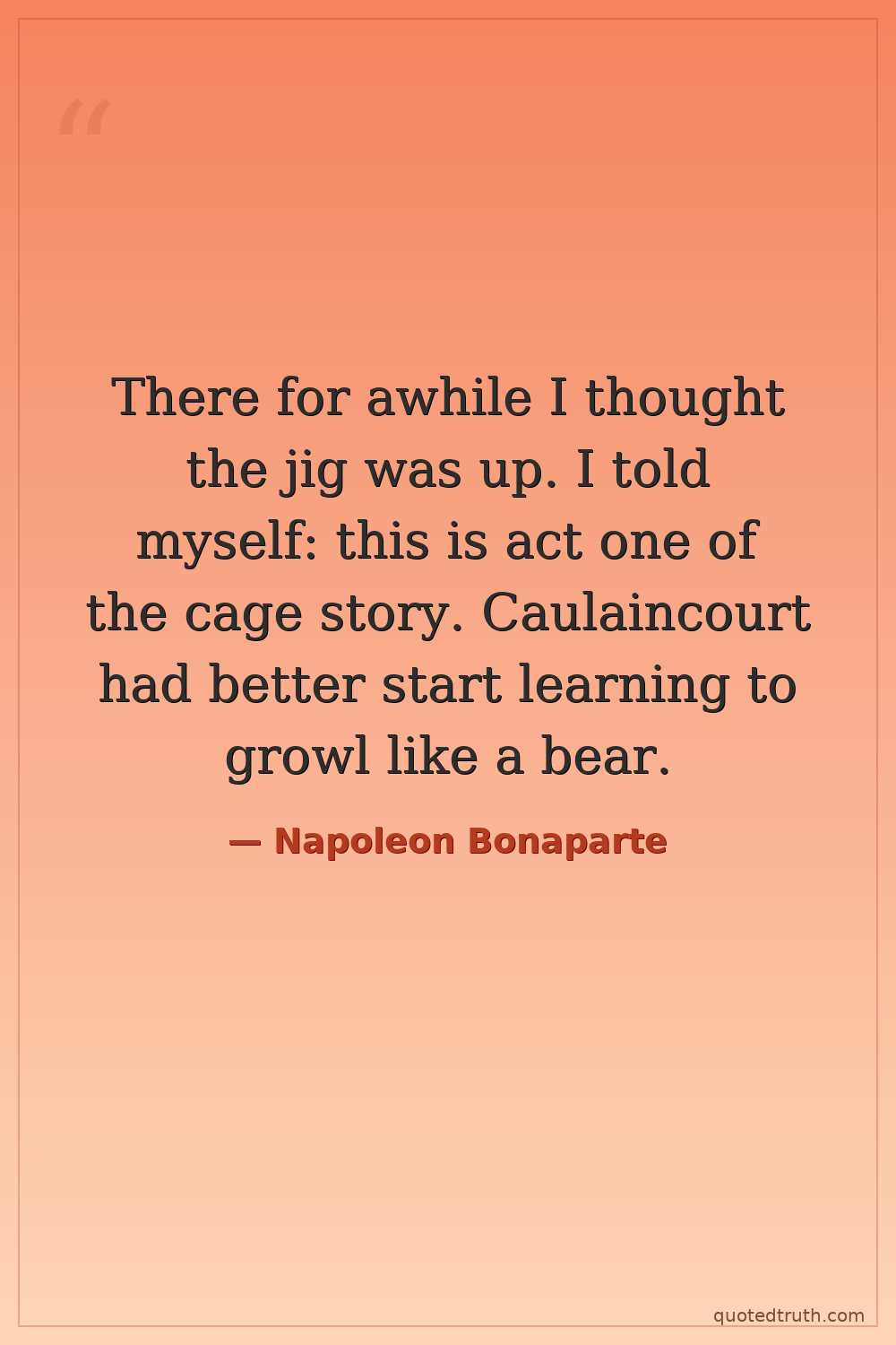 There for awhile I thought the jig was up. I told myself: this is act one of the cage story. Caulaincourt had better start learning to growl like a bear.