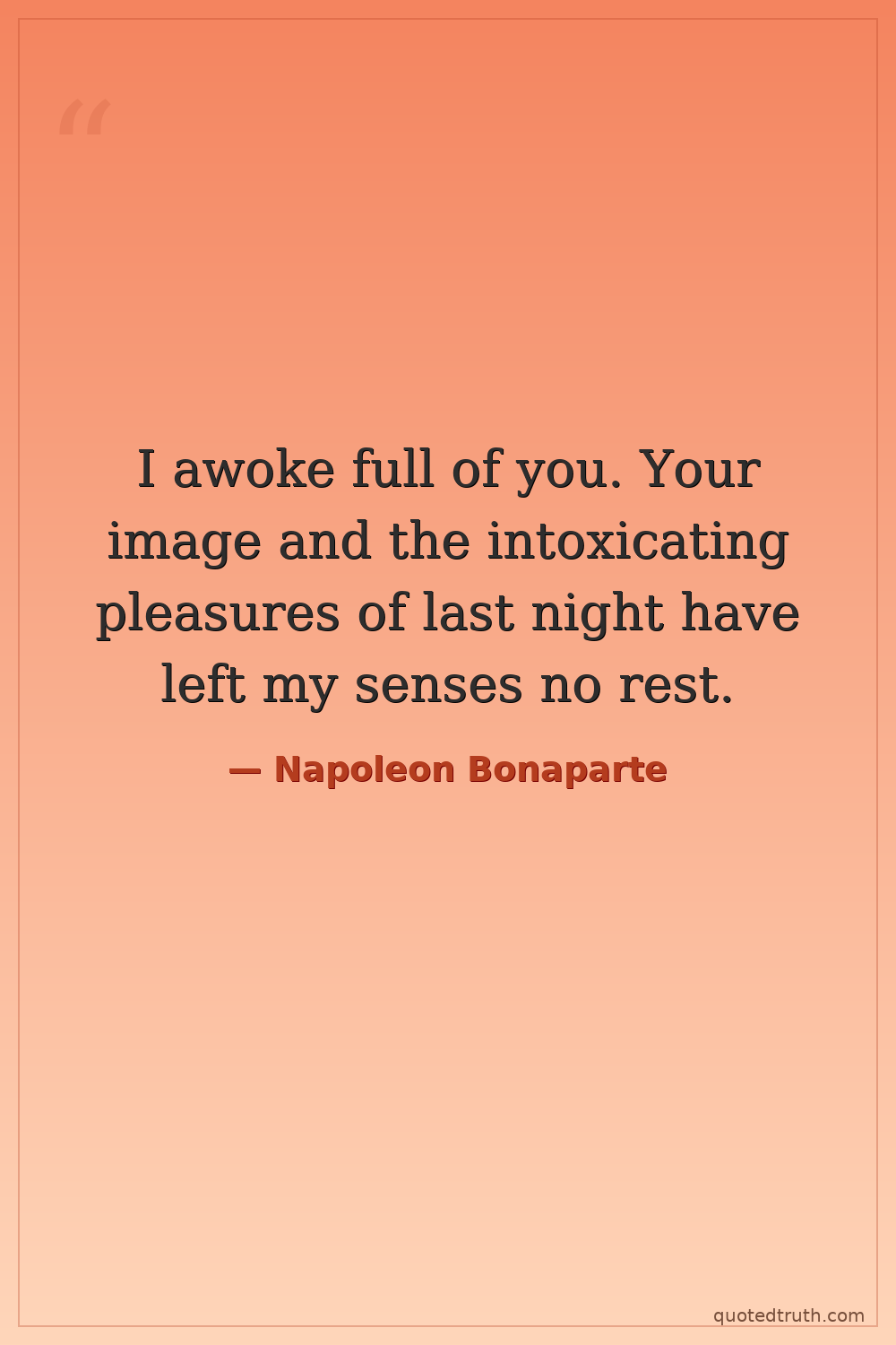 I awoke full of you. Your image and the intoxicating pleasures of last night have left my senses no rest.