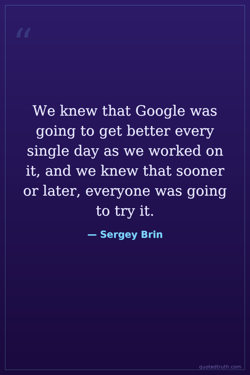 We knew that Google was going to get better every single day as we worked on it, and we knew that sooner or later, everyone was going to try it.