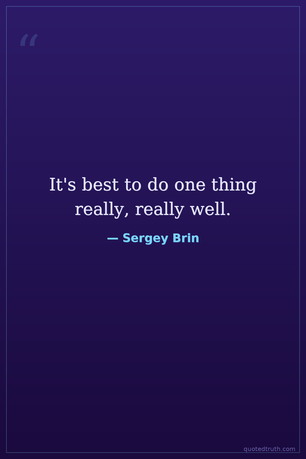 It's best to do one thing really, really well.