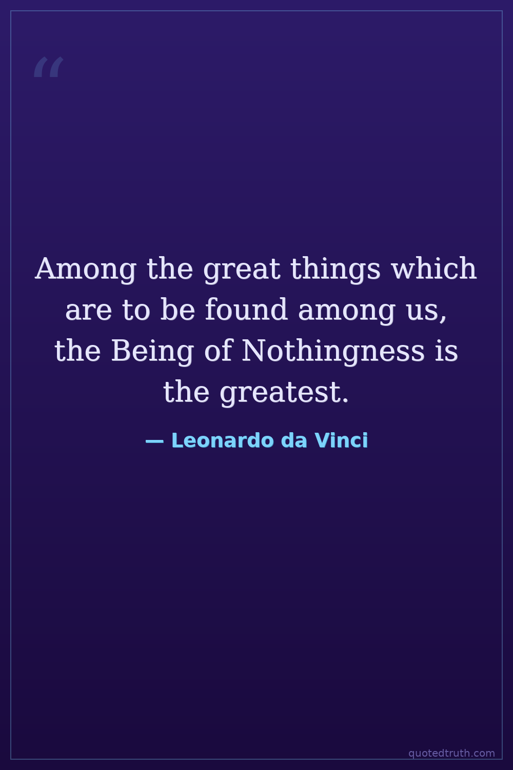 Among the great things which are to be found among us, the Being of Nothingness is the greatest.