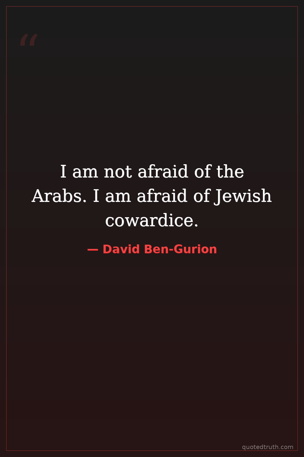 I am not afraid of the Arabs. I am afraid of Jewish cowardice.