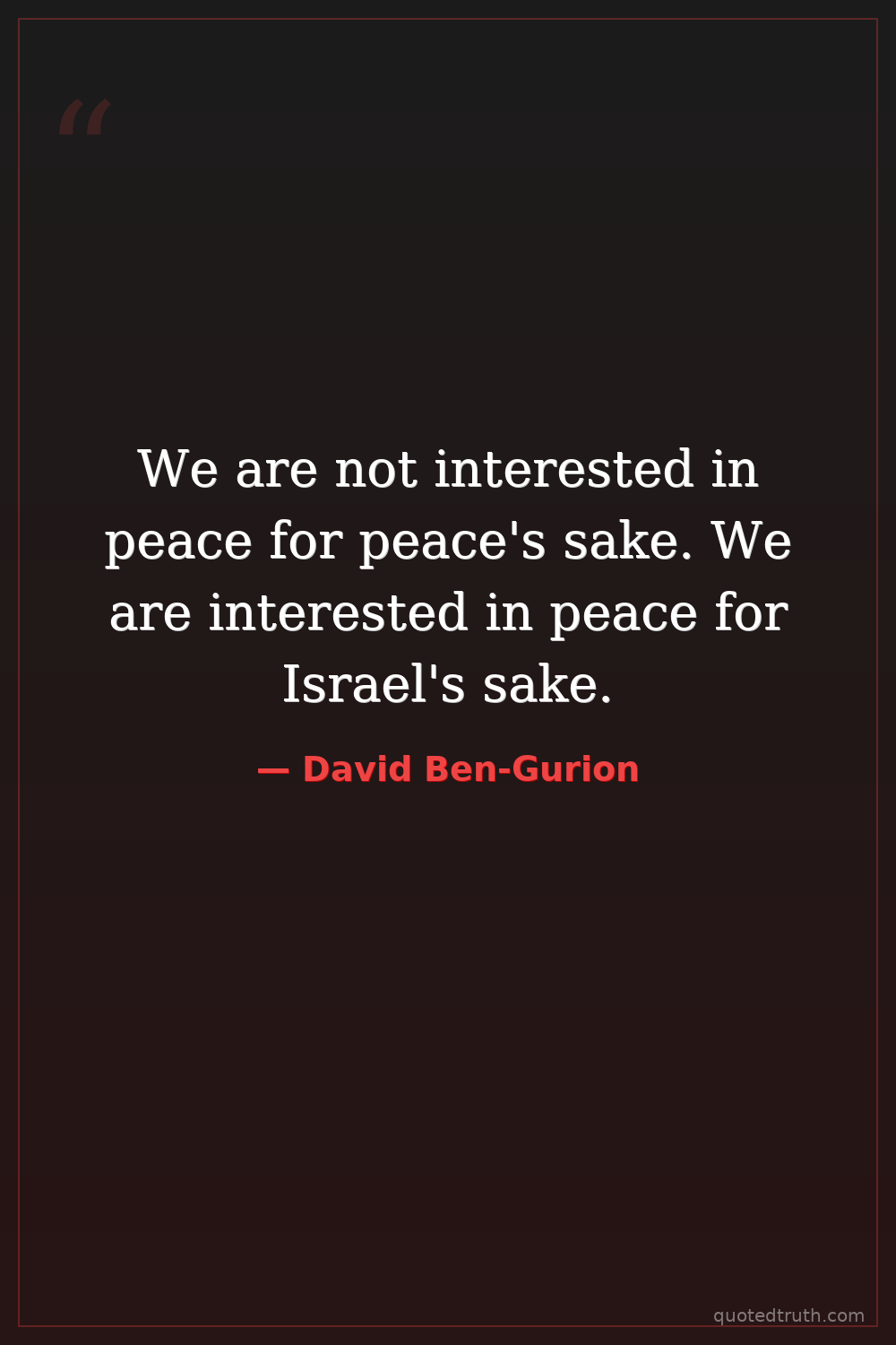 We are not interested in peace for peace's sake. We are interested in peace for Israel's sake.