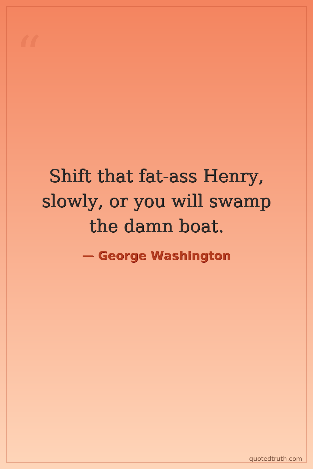Shift that fat-ass Henry, slowly, or you will swamp the damn boat.