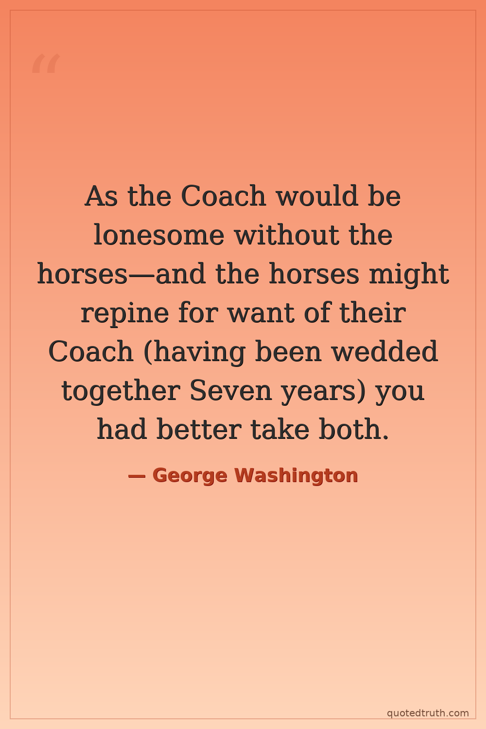 As the Coach would be lonesome without the horses—and the horses might repine for want of their Coach (having been wedded together Seven years) you had better take both.