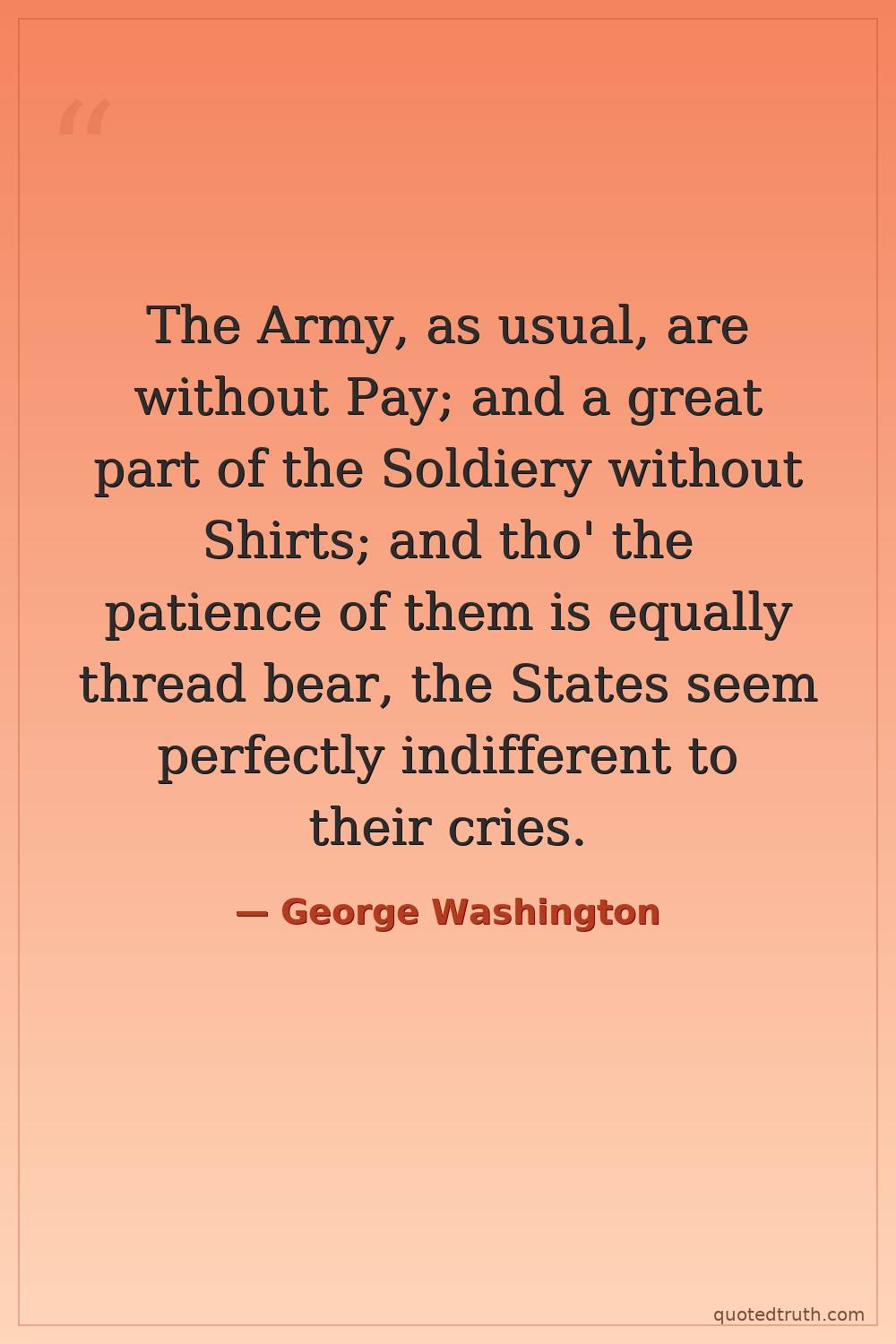 The Army, as usual, are without Pay; and a great part of the Soldiery without Shirts; and tho' the patience of them is equally thread bear, the States seem perfectly indifferent to their cries.