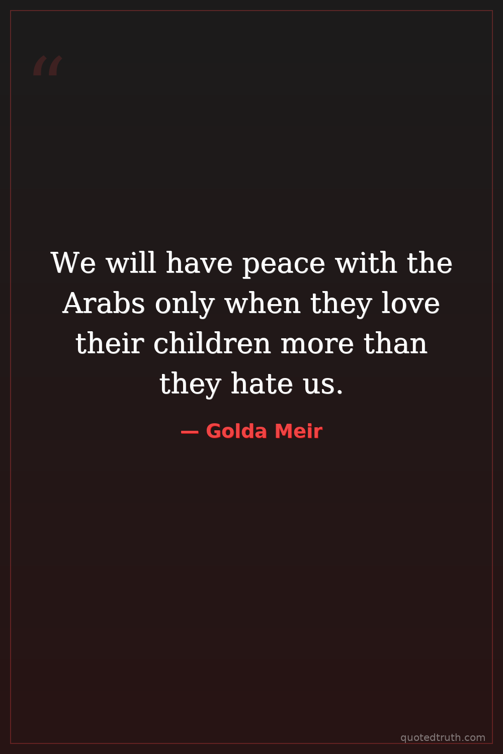 We will have peace with the Arabs only when they love their children more than they hate us.