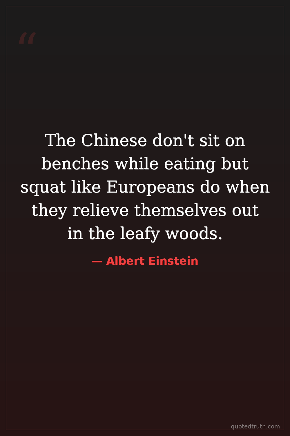 The Chinese don't sit on benches while eating but squat like Europeans do when they relieve themselves out in the leafy woods.