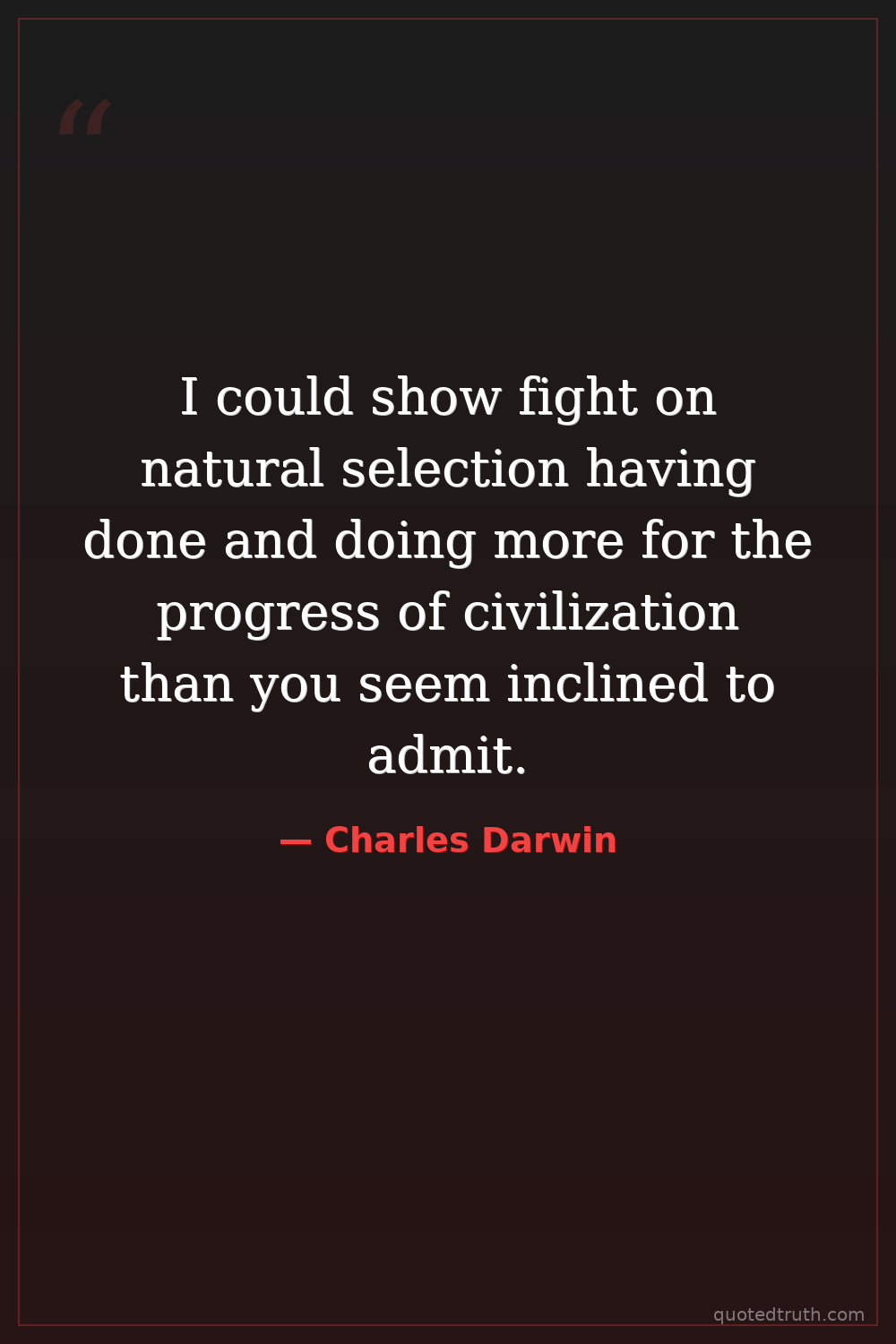 I could show fight on natural selection having done and doing more for the progress of civilization than you seem inclined to admit.