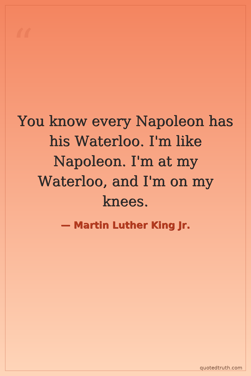 You know every Napoleon has his Waterloo. I'm like Napoleon. I'm at my Waterloo, and I'm on my knees.