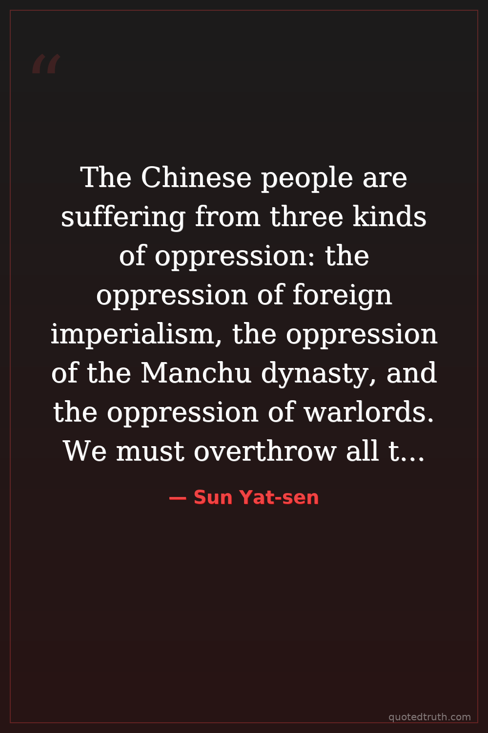 The Chinese people are suffering from three kinds of oppression: the oppression of foreign imperialism, the oppression of the Manchu dynasty, and the oppression of warlords. We must overthrow all these oppressions.