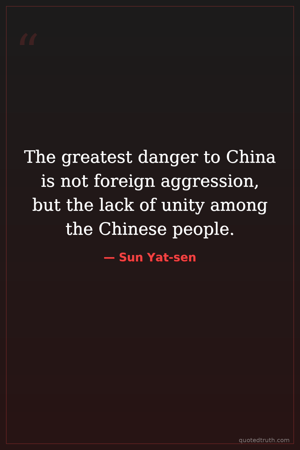 The greatest danger to China is not foreign aggression, but the lack of unity among the Chinese people.