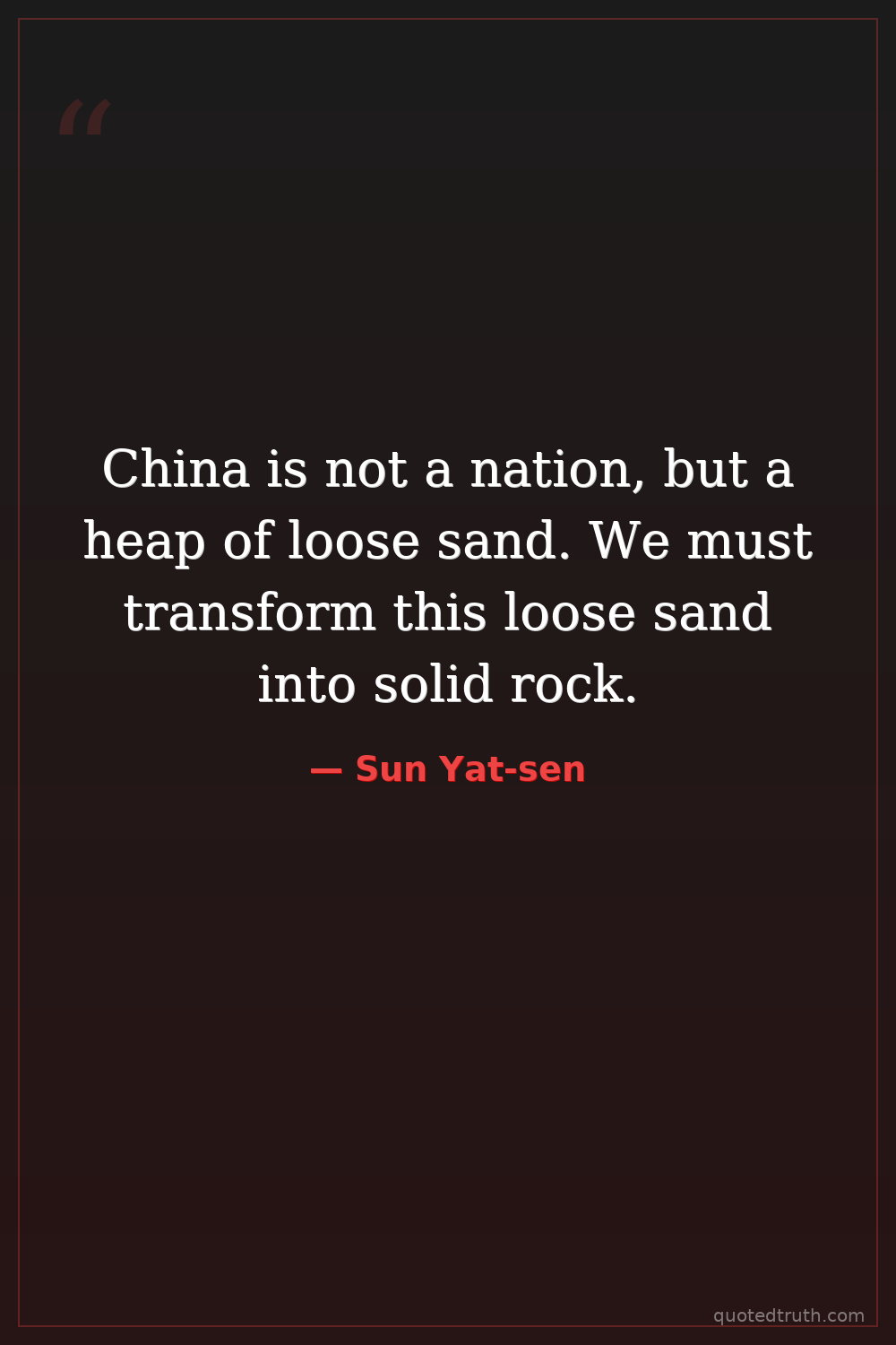 China is not a nation, but a heap of loose sand. We must transform this loose sand into solid rock.