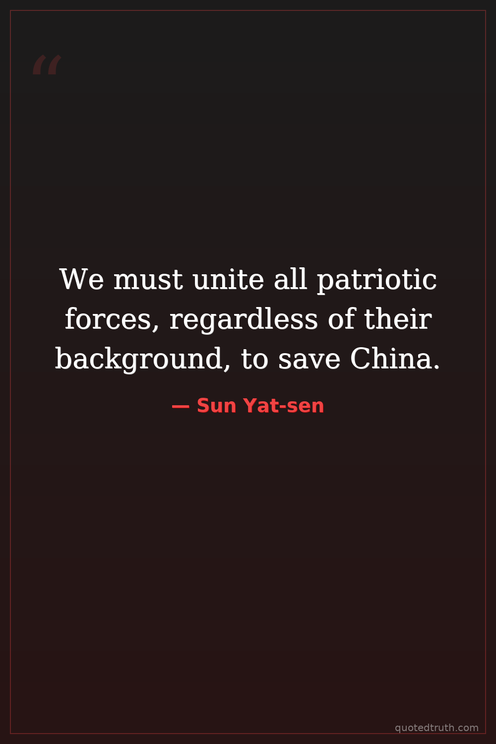 We must unite all patriotic forces, regardless of their background, to save China.