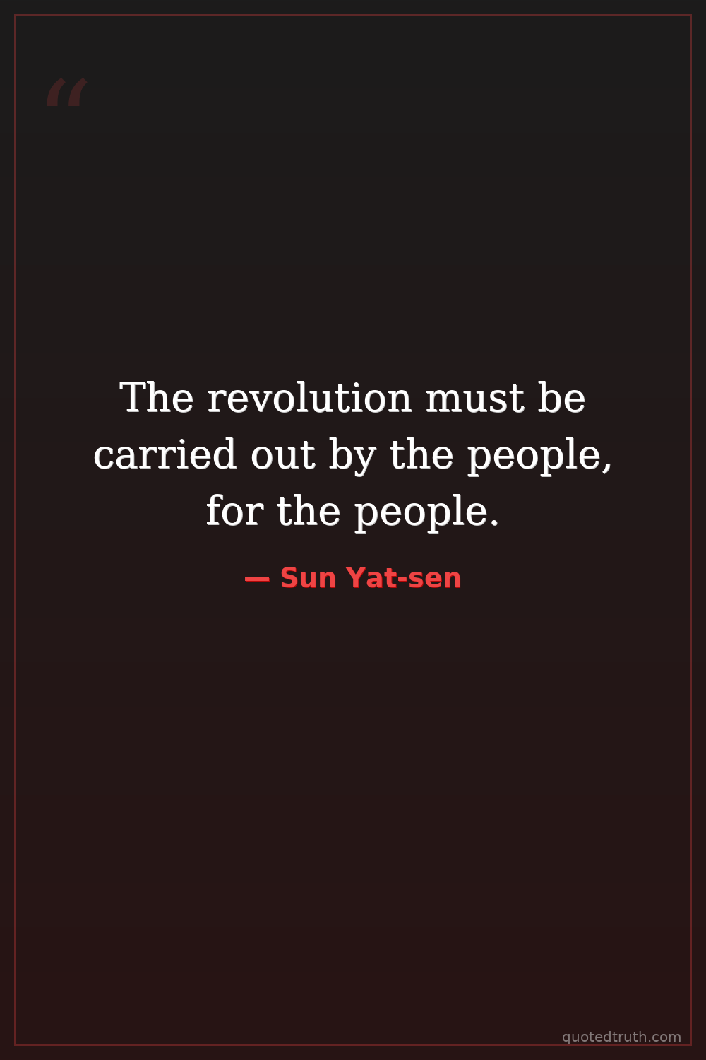 "The Chinese people are suffering from three kinds of oppression: the oppression of foreign imperialism, the oppression of the Manchu dynasty, and the oppression of warlords. We must overthrow all thes…"