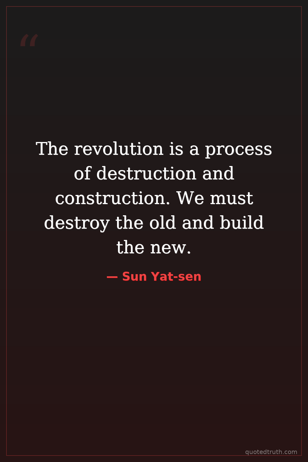 The revolution is a process of destruction and construction. We must destroy the old and build the new.