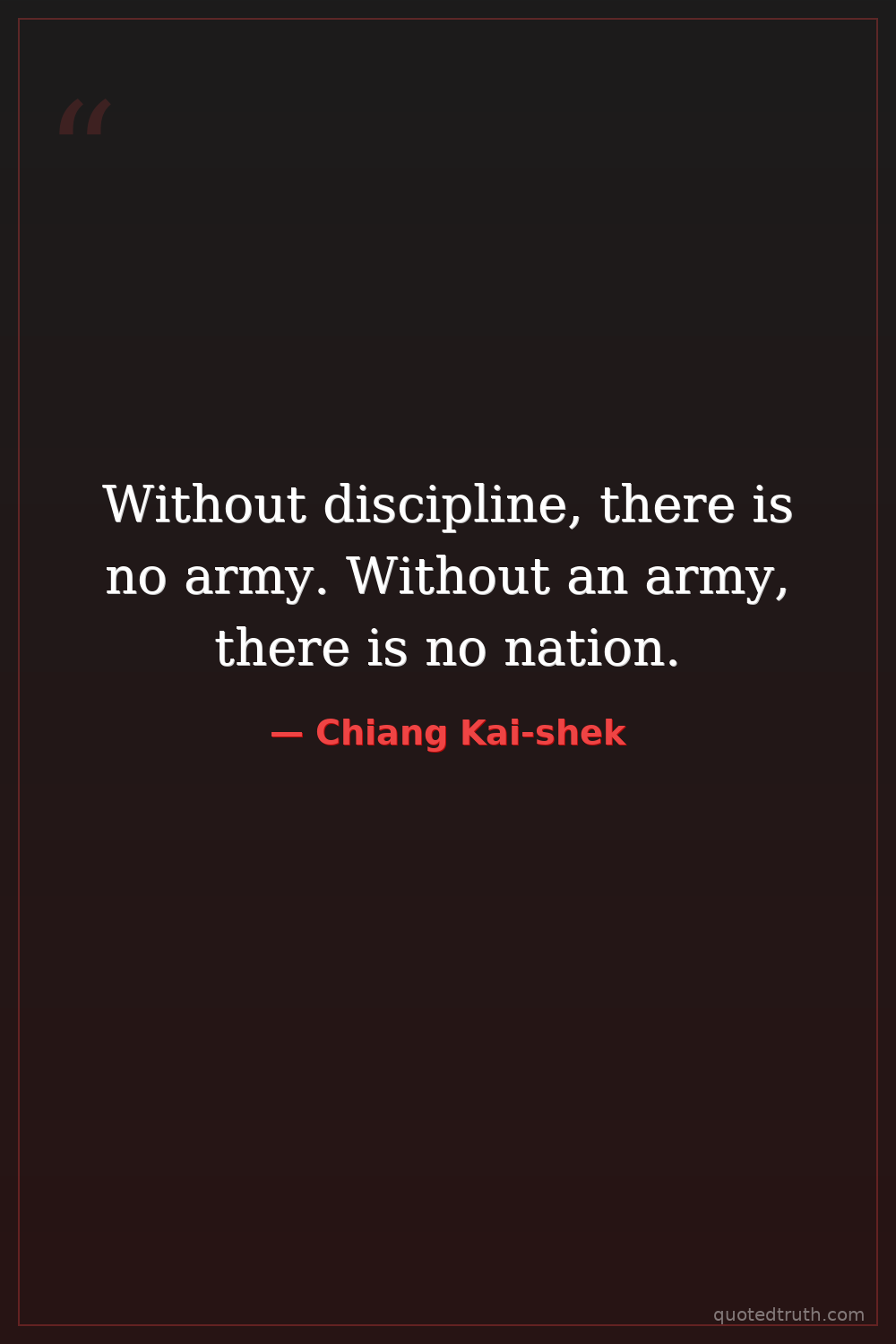 Without discipline, there is no army. Without an army, there is no nation.